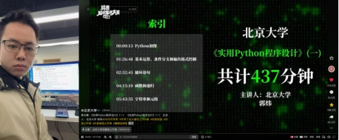 韩老师的经历并非孤例。在抖音“北大校区”,千万用户正通过碎片化时间系统学习顶尖课程。例如,贵阳的零售销售员@子懿通过《实用Python程序设计》课程打开了编程世界的大门。这门由北大郭炜老师主讲的通识课在抖音播放量达5000万,@子懿一月内打开162次、观看64小时,从“编程小白”进阶为能编写实用程序的爱好者。“遇到瓶颈时,我学会了如何克服抵触情绪,”他分享道,“抖音公开课让我找到了AI时代的钥匙。”